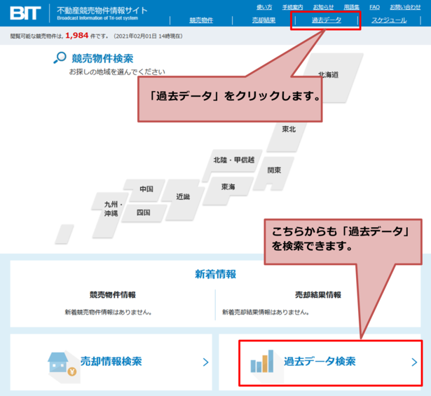 はじめに,トップ画面の「過去データ」をクリックします。